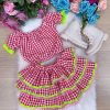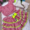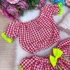 Conjunto Junino Banana Club Luxo Sofia Xadrez Vermelho