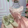 Confeccionado em tecido misto possui forro em poliéster e algodão para não incomodar a criança e proporcionando um caimento incrível e sofisticado, possui gola redonda, comprimento médio, mangas curtas, possui elástico nas costas para melhor ajuste, e acabamento com lindo laço na parte posterior do vestido completa o look dos sonhos!