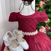 Confeccionado em tecido misto possui forro em poliéster e algodão para não incomodar a criança e proporcionando um caimento incrível e sofisticado, possui gola redonda, comprimento médio, mangas curtas, contém, também, elástico nas costas para melhor ajuste, acabamento com lindo laço na parte posterior do vestido completa o look dos sonhos!