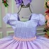 Confeccionado em tecido misto possui forro em poliéster e algodão para não incomodar a criança e proporcionando um caimento incrível e sofisticado, possui comprimento médio,sem mangas,possui elástico nas costas para melhor ajuste, alças de amarrar completa o look dos sonhos!
