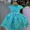 Confeccionado em tecido misto possui forro em poliéster e algodão para não incomodar a criança e proporcionando um caimento incrível e sofisticado, possui gola redonda, comprimento médio, mangas curtas, possui elástico nas costas para melhor ajuste, acabamento com lindo laço na parte posterior do vestido completa o look dos sonhos!