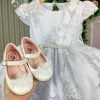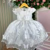 Confeccionado em tecido misto possui forro em poliéster e algodão para não incomodar a criança e proporcionando um caimento incrível e sofisticado, possui gola redonda, comprimento médio, mangas curtas, possui elástico nas costas para melhor ajuste, todo com glitter e acabamento com lindo laço na parte posterior do vestido completa o look dos sonhos!