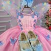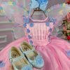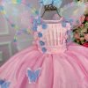 Vestido Marie Jardim Encantado Rosa Borboletas Azul