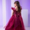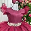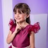 Confeccionado em tecido misto possui forro em poliéster e algodão para não incomodar a criança e proporcionando um caimento incrível e sofisticado, possui gola redonda,renda de flores e apliques de strass no peito, comprimento médio, mangas curtas, possui elástico nas costas para melhor ajuste, acabamento com lindo laço na parte posterior do vestido completa o look dos sonhos!