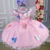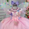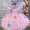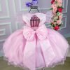 Confeccionado em tecido misto possui forro em poliéster e algodão para não machucar a criança e proporcionando um caimento incrível e sofisticado, possui gola redonda, comprimento médio, mangas curtas, possui elástico nas costas para melhor ajuste, acabamento com lindo laço na parte posterior do vestido completa o look dos sonhos!