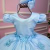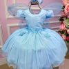Confeccionado em tecido misto possui forro em poliéster e algodão para não incomodar a criança e proporcionando um caimento incrível e sofisticado, possui gola redonda, comprimento médio, mangas curtas, possui elástico nas costas para melhor ajuste, acabamento com lindo laço na parte posterior do vestido completa o look dos sonhos!